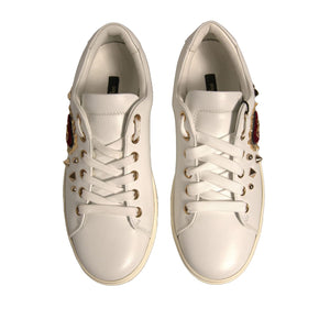 Dolce & Gabbana White Leather Gold Red Heart Sneakers Shoes
