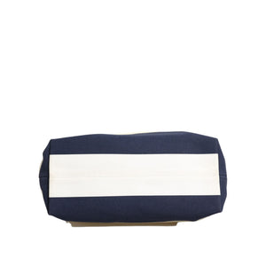 Dolce & Gabbana White Navy Striped Canvas Top Handle Tote Bag