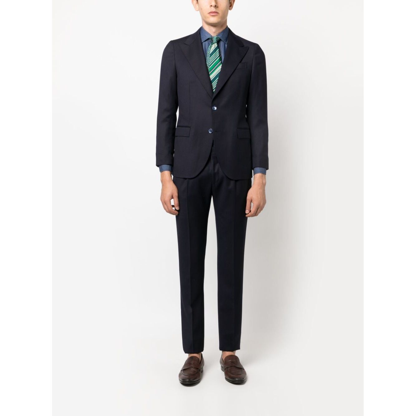 قميص قطني أزرق داكن بياقة واسعة وأزرار أمامية وأكمام طويلة وأصفاد بأزرار وحاشية منحنية في الخلف المقاس والملاءمة - هذه القطعة تناسب المقاس الحقيقي. نوصيك بالحصول على مقاسك المعتاد. يبلغ طول العارضة 1.84 متر / 6 أقدام و1 بوصة وترتدي مقاس 39 (طوق سم)