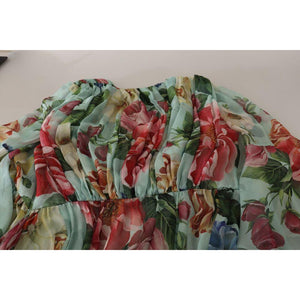 فستان دولتشي آند غابانا متوسط الطول من الحرير المزين بالزهور