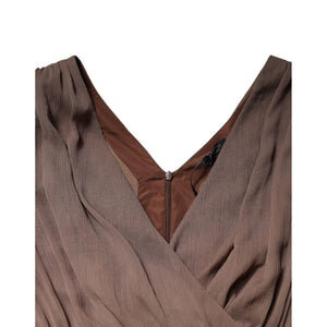 Peserico Brown Sleeveless Deep V-neck A-line Long Maxi Dress