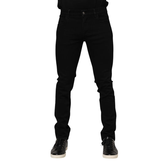 Dolce & Gabbana Blue Cotton Logo Plaque Skinny Men Denim Jeans