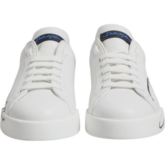 Dolce & Gabbana White Blue Leather Logo Low Top Sneakers Shoes