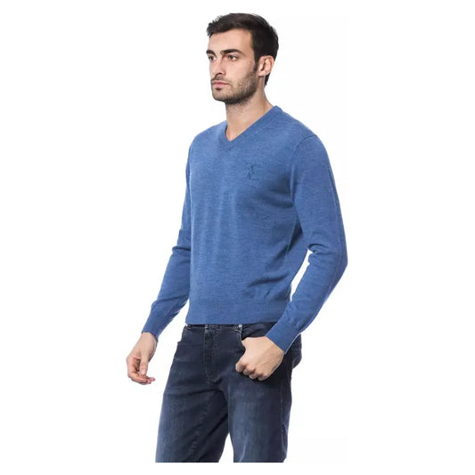 Ermanno Scervino Blue Wool Blend V-neck Pullover Sweater
