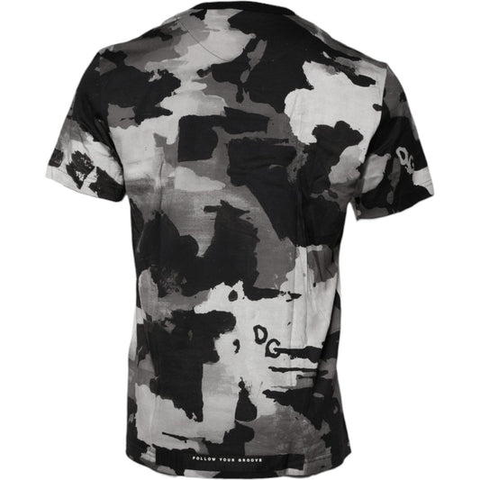 Dolce & Gabbana White Gray Camouflage Cotton Crew Neck T-shirt