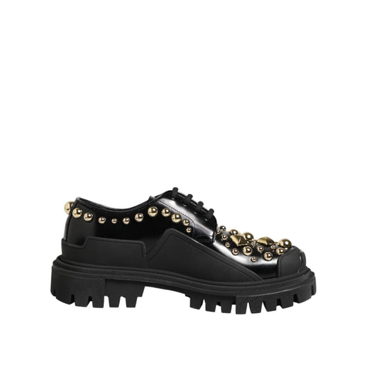 Dolce & Gabbana Black Leather Jeweled Crystals Derby Shoes