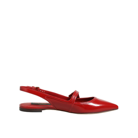 Dolce & Gabbana Red Leather Slingback Flats Sandals Shoes