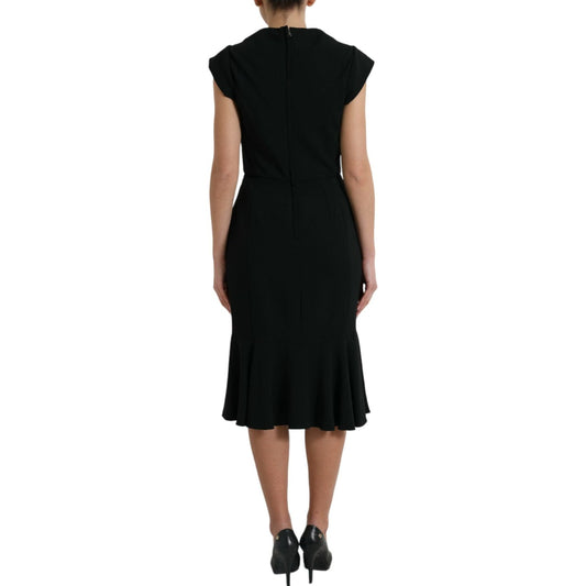 Dolce & Gabbana Black Sheath Midi Gown Wool Wrap Dress
