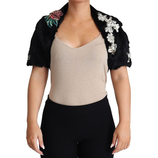 Dolce & Gabbana Black Rabbit Fur Crystals Sequin Coat