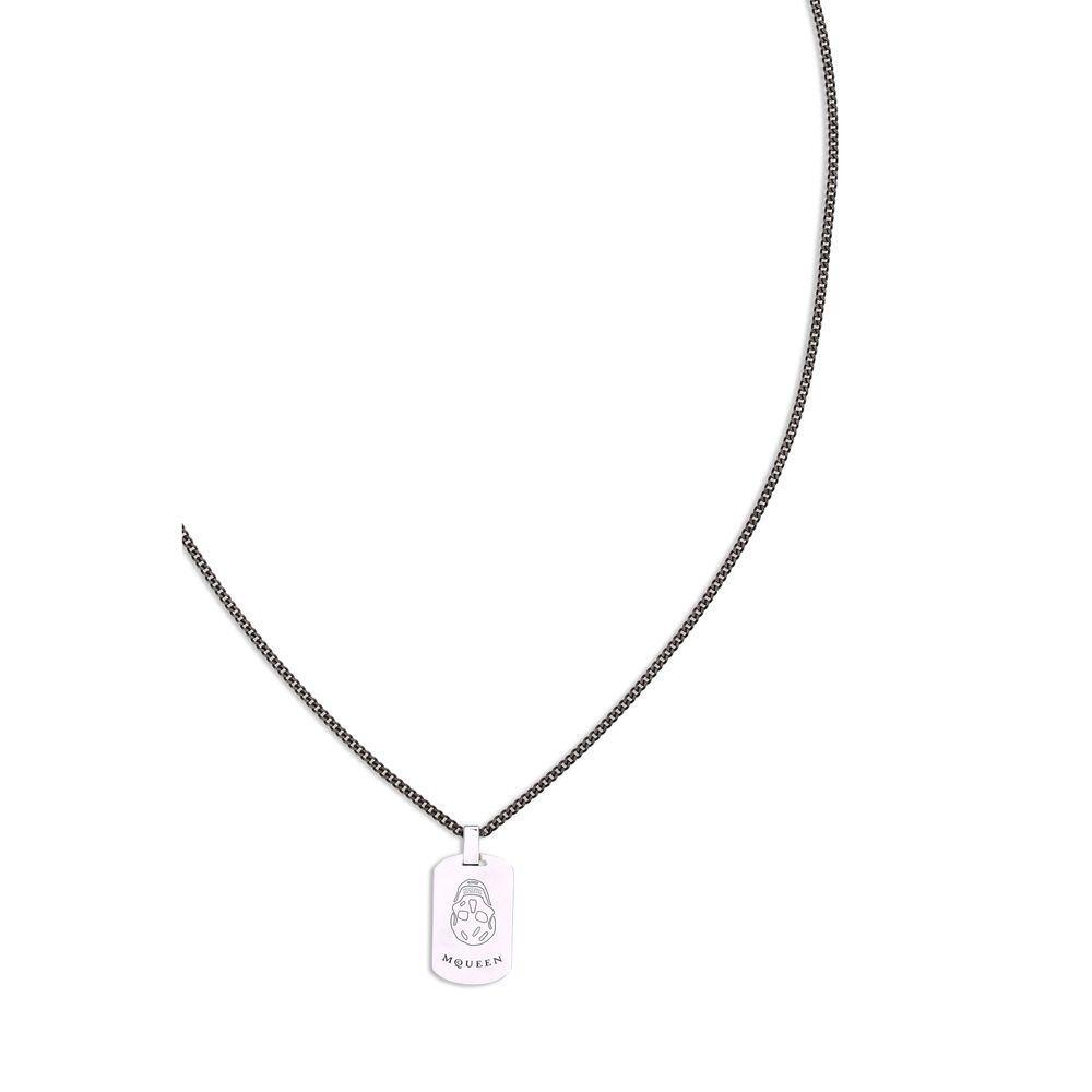 Alexander McQueen’s Skull Necklace perfectly embodies the brand’s dark and sophisticated aesthetic. Crafted with attention to detail, it features a stylized skull pendant, the iconic symbol of the fashion house, which adds a bold and distinctive touch to the design. The hook-and-eye closure ensures a practical and secure fit, completing an accessory designed for those who love to express character and originality with a bold and contemporary style.