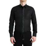 Dolce & Gabbana Black Cotton Logo Formal GOLD Dress Shirt