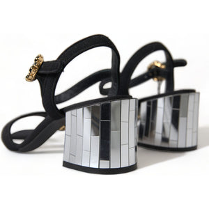 Dolce & Gabbana Black Crystals Ankle Strap Sandals Shoes