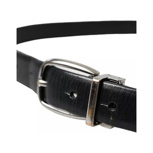 Dolce & Gabbana Black Leather Silver Metal Buckle Men Belt