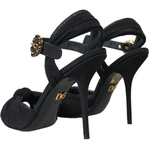Dolce & Gabbana Black Suede Embellished Heels Sandals Shoes