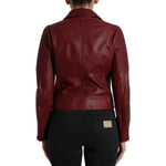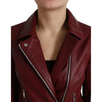 Dolce & Gabbana Bordeaux Leather Biker Coat Lambskin Jacket
