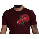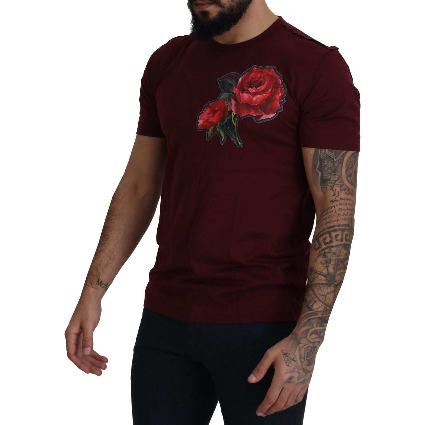 Dolce & Gabbana Bordeaux Roses Cotton Crewneck T-shirt