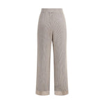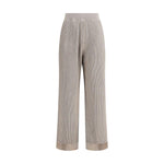 Brunello Cucinelli’s Lurex Pants combine elegance and comfort in a bright, contemporary design. The elasticized waistband ensures a relaxed fit, while the ribbed design and straight leg slim the silhouette with discretion. Two side welt pockets complete the design, combining functionality and style. A perfect garment to enrich the everyday with a touch of refined brilliance.