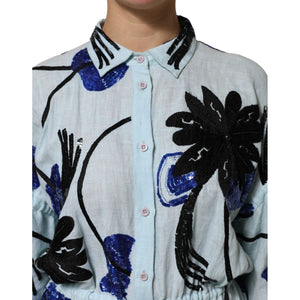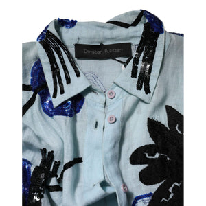Christian Pellizzari Blue Sequin Embellished Shirt Maxi Dress