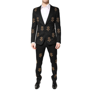 Dolce & Gabbana Black Bee Crown Embroidery 2 Piece Suit