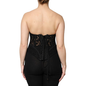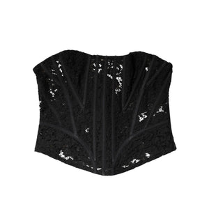 • Dolce & Gabbana Black Cotton Floral Lace Corset Bustier Top