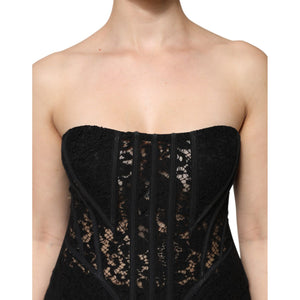 Dolce & Gabbana Black Cotton Floral Lace Corset Bustier Top