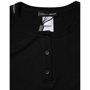 Dolce & Gabbana Black Cotton Henley Short Sleeves Top T-shirt