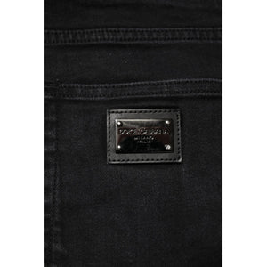 Dolce & Gabbana Black Cotton Logo Plaque Slim Fit Denim Jeans