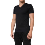 Dolce & Gabbana Black Cotton Plain V-Neck Men Shirt T-shirt
