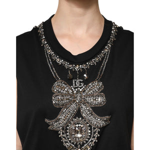 Dolce & Gabbana Black Cotton Rhinestone Embellished Tank Top