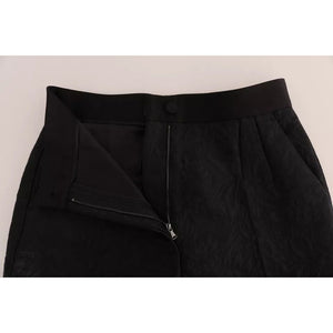Dolce & Gabbana Black Floral Brocade High Waist Pants