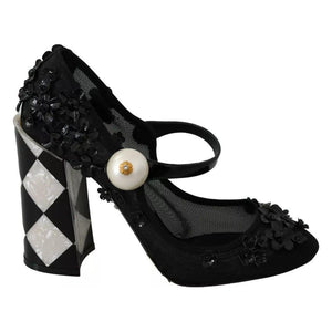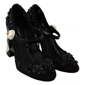 Dolce & Gabbana Black Floral Embellish Heels Mary Janes Pumps Shoes