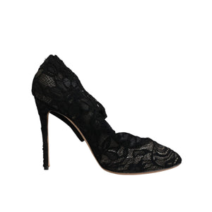 Dolce & Gabbana Black Lace Stretch Heels Mid Calf Boots Shoes