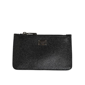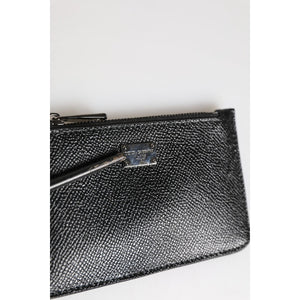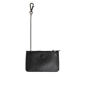 Dolce & Gabbana Black Leather Chain Link Mens Coin Purse Key Clip Holder Wallet