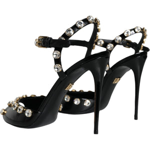 Dolce & Gabbana Black Leather Crystal Ankle Strap Sandals Shoes