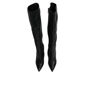 Dolce & Gabbana Black Leather Heels Knee High Boots Shoes