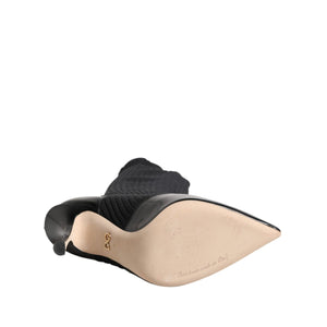 Dolce & Gabbana Black Leather Ribbed Knit Knee Boots Shoes