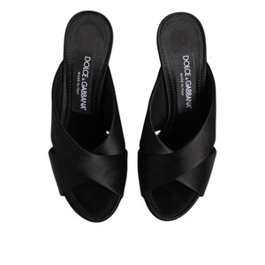 Dolce & Gabbana Black Logo KEIRA Satin Slides Sandals Shoes