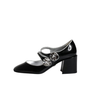 Dolce & Gabbana Black Patent Leather Crystal Mary Jane Pumps Shoes