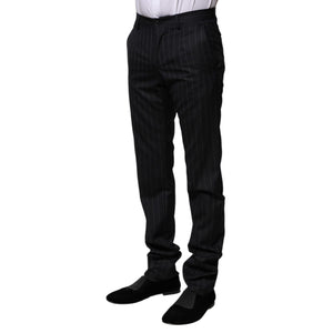 Dolce & Gabbana Black Wool Striped Formal Pants
