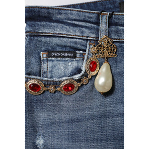 Dolce & Gabbana Blue Rhinestone Embellished Denim Jeans