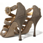 Dolce & Gabbana Bronze Crystal Strap Heels Sandals Shoes