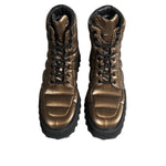Dolce & Gabbana Bronze Padded Mid Calf Lace Up Boots Shoes
