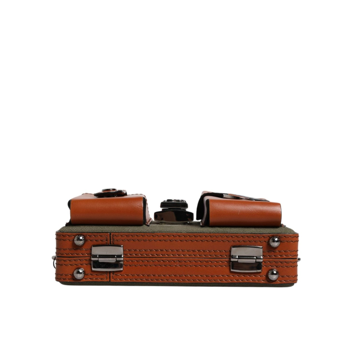 Dolce & Gabbana Green Brown Leather Clutch Purse Bag