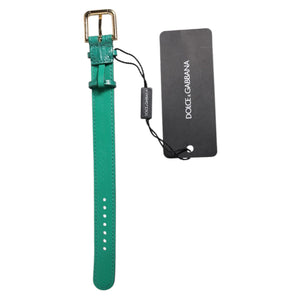 • Dolce & Gabbana Green Exotic Leather Gold Tone Metal Buckle Armband