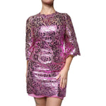 Dolce & Gabbana Metallic Fuchsia Floral Sheath Mini Dress