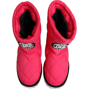 Gorgeous brand new, 100% Authentic Dolce & Gabbana features a playful pink and white colorway in a padded mid-calf boot design. Crafted from soft viscose fabric, these boots offer a cozy yet stylish look, perfect for statement winter wear. With their modern silhouette and luxurious feel, they’re a standout addition to any fashion-forward wardrobe.