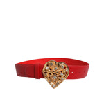 • Dolce & Gabbana Red Calf Leather Embellished Metal Buckle Belt