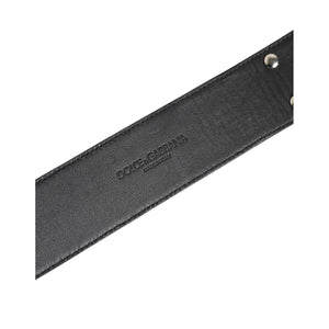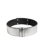 Dolce & Gabbana Silver Textured Leather Gold Tone Metal Neckband