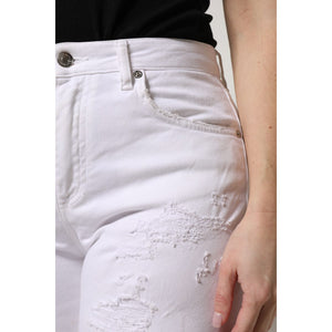 Dolce & Gabbana White Cotton Tattered BOYFRIEND Denim Jeans