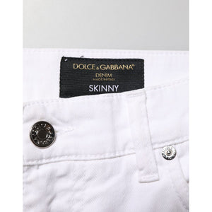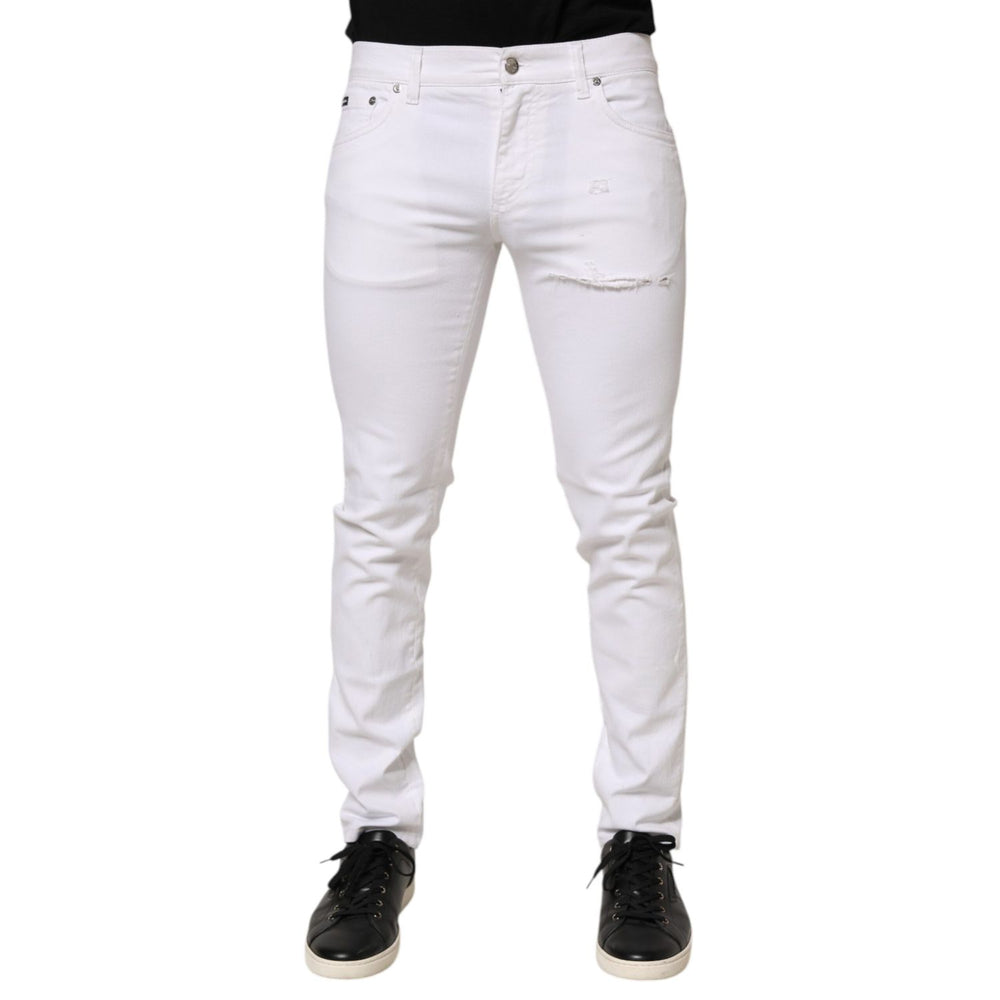 Dolce & Gabbana White Ripped Cotton Skinny Men Denim Jeans